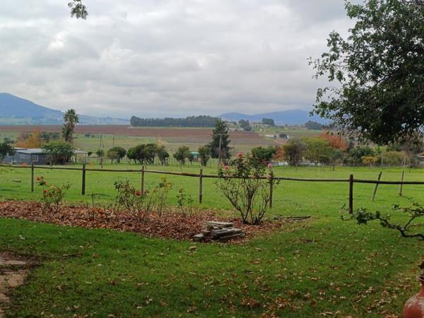 12,8ha LIFESTYLE FARM KOELENHOF. JOINT MANDATE. Ambiance. Location. Views. Peaceful. This 12,8ha Lifestyle smallholding provides a feasible farming opportunity for entrepreneurs. The farm has very fertile soil, currently providing good pasture for farm animals. There are 80 olive trees. The soil is also ideal for vegetable farming, due to the half a metre sand, draining and clay combination. All 12,8 ha can be put under irrigation, because there is a lot of water. There are 2 boreholes and a potential spot for a 3rd one. Borehole 1 produces a lot of water. Borehole 2 is being used to fill the farm dam. Then you have the Theewaterskloof dam (4 ha irrigation), a 5000 litre water tank for the garden and water from the Cape Town Metropole for household usage.