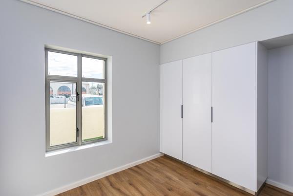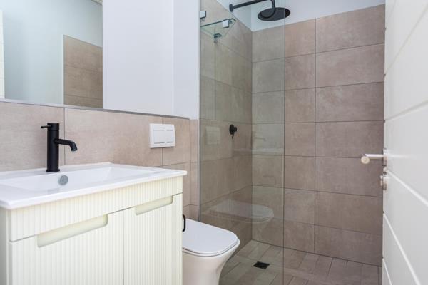Both bedrooms are well-proportioned, offering ample built-in cupboards, while the bathrooms are neat and functional.