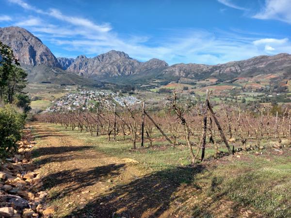 Breath taking scenery into the Simonsberg Mountain and the neighbouring farms.