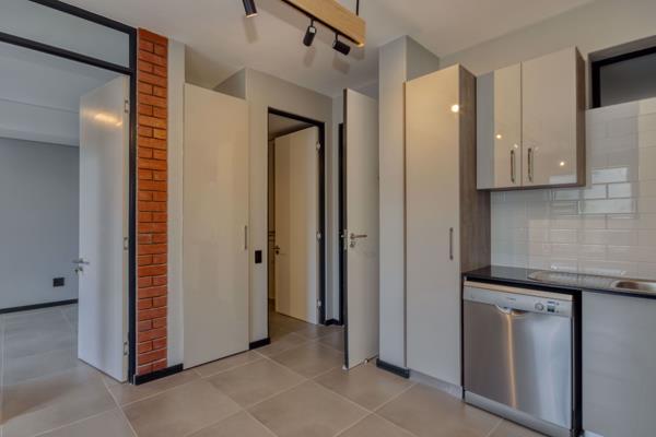 Bosmans Club, Distillery Rd - 2 bed-, 2 bathroom contemporary north-facing apartment with 2 basement p/bays opposite IMM and Inscape. Fresh and light are your first idea when entering this neat 66m2 apartment with a 5m2 balcony. The main bedroom has ample built-in cupboards and is en suite. Additional to the SMEG built-in oven, extractor and gas hob in the kitchen, are a free-standing fridge/freezer combination as well as a dishwasher. Electicity is pre-paid and fibre has been installed. The apartment block has a building manager on site during daytime and a security guard at night. It has a braai terrace and bicycle shed. The rent includes two basement parking bays. Cats are allowed with the approval of the trustees. Bosmans Club is a mixed-use apartment block with a laundrette with laundry facilities on the ground floor. The latter offers their services at a discounted rate for residents of the apartment block.