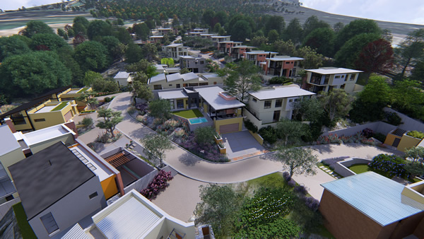 The smaller erven are located along the northern boundary, as determined by the topography. The south western properties will be less densely developed. Simple but different building forms in earthy and natural colours are encouraged to create diversity.