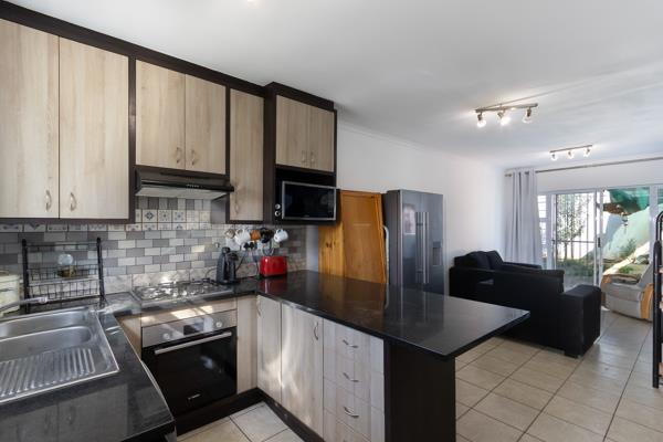 The open-plan living area with well fitted kitchen and large granite countertop is spacious with a built-in stove and space for a washing machine. A practical layout with easy flow to the generous front and back outside areas boasting a large tree as well as magnificent mountain views.
