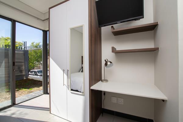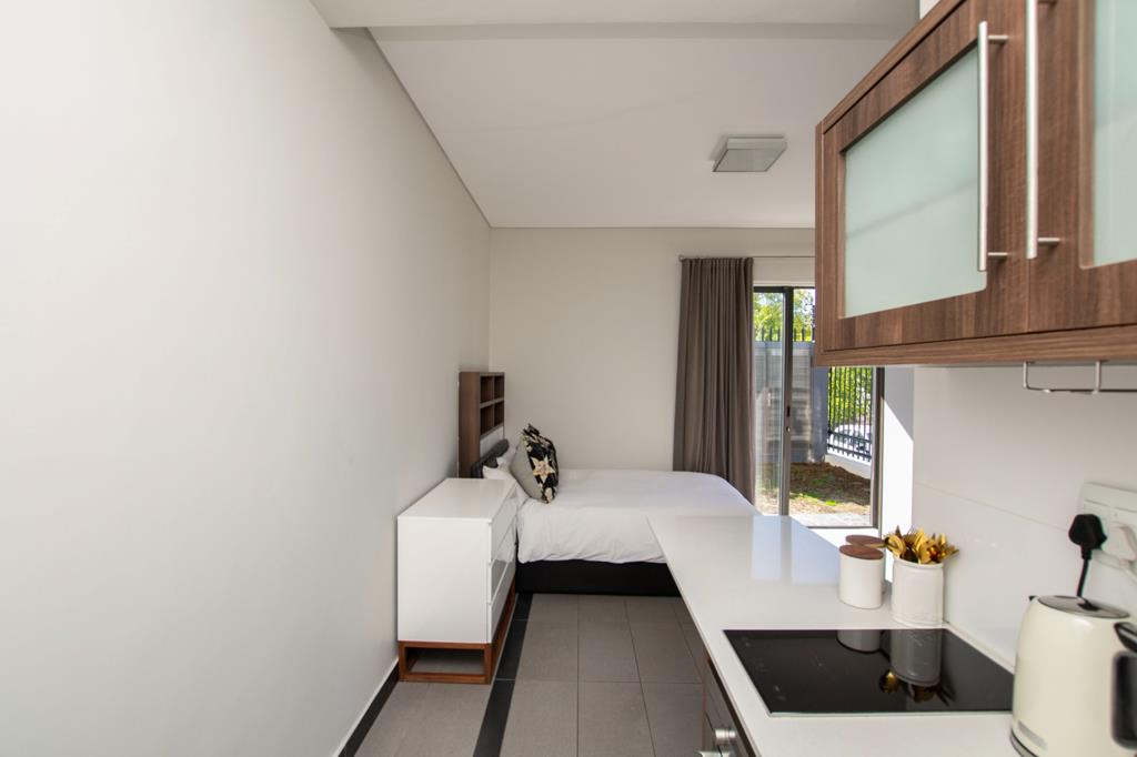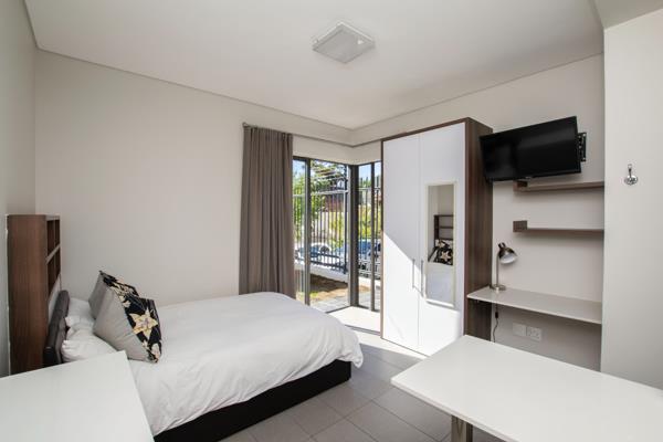 This luxury ground-floor studio apartment in the sought-after Dempsey complex is perfectly positioned on the Stellenbosch University campus right next to the Music Conservatory and Huis De Villiers. An ideal choice for students who value security, convenience, and stylish living.