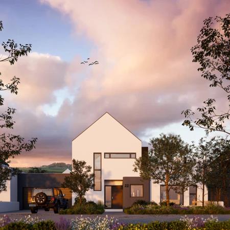 The home features a spacious open-plan layout, with a modern kitchen flowing seamlessly into the living and dining areas. Three well-appointed bedrooms provide ample space for relaxation, while the master suite includes an en-suite bathroom for added privacy. A double garage ensures secure parking and extra storage, while the private garden creates an inviting outdoor retreat.