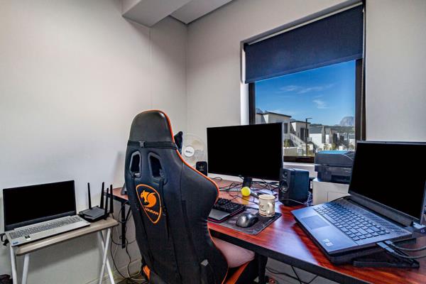 The home features two generously sized bedrooms, two contemporary bathrooms 1ensuite, an extra length single garage, and an additional parking bay. A dedicated home office enhances the functionality of the space, making it ideal for remote work or study.