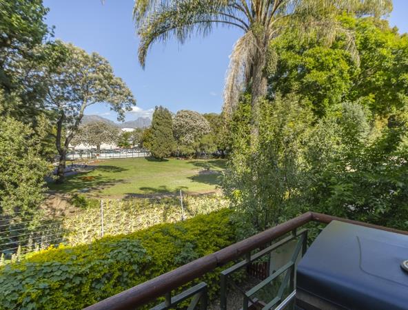 The open-plan living area flows onto a small balcony, perfect for enjoying your morning coffee while overlooking the manicured gardens.