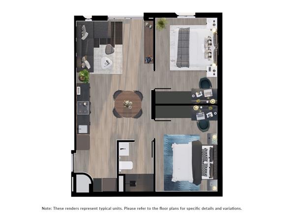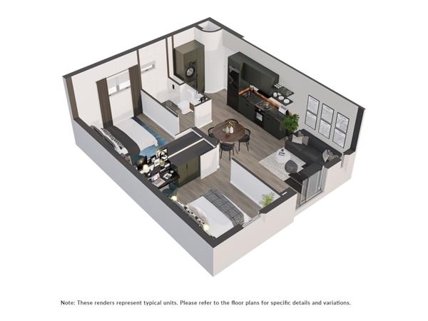 The apartment features vinyl flooring throughout, enhancing the contemporary aesthetic, while large windows invite natural light and frame spectacular mountain views. Step outside to your private lawn, perfect for relaxed mornings, entertaining, or a safe space for pets.