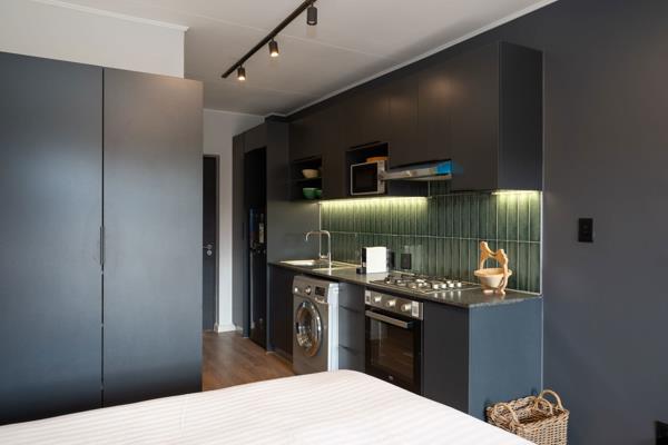 Ground-floor with Garden, Studio . Situated on the ground floor of The Bosk, in the award winning estate Newinbosch Neighbourhood. This move in ready, studio apartment has 32m2 of internal living space and a -15m2 garden to be planted with fantastic views of Simonsberg.