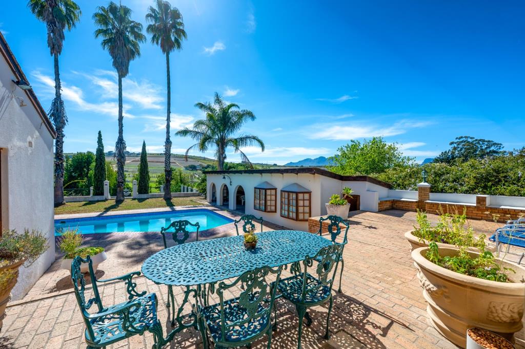 Set on an expansive, agricultural smallholding in the serene Stellenbosch Farms area, this exceptional property offers a rare blend of spacious family living, countryside charm, and income or lifestyle potential.