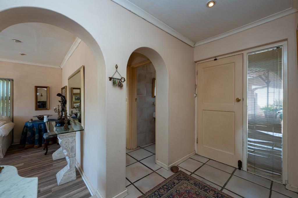 Accommodation includes 4 well-sized bedrooms and 4 bathrooms. The main bedroom is a private retreat, featuring abundant built-in cupboards, a full en-suite bathroom, and direct access to the outdoor pool area. One of the additional rooms doubles as a secure safe room, complete with a large built-in safe and wine storage. A separate outside room with its own bathroom adds further flexibility for guests or staff accommodation.