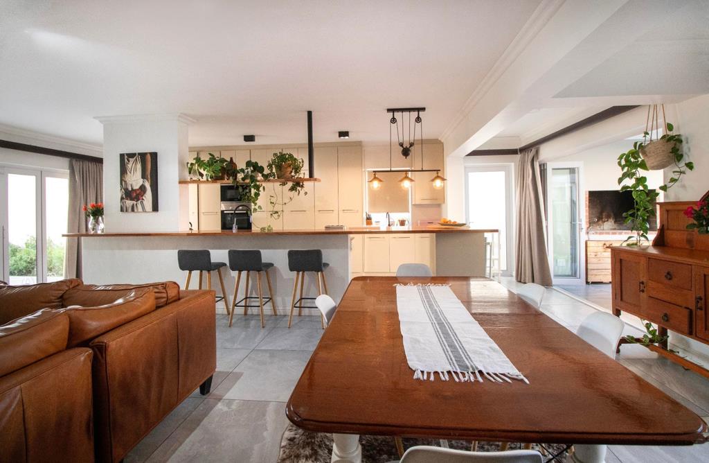 The home is perfect for the entertainer with an open plan kitchen, stacker doors opening towards two covered patios, a combustion wood fireplace and lovely views. The modern kitchen has an integrated fridge and freezer and the home is also kitted with a very capable Solar and Inverter system.