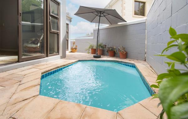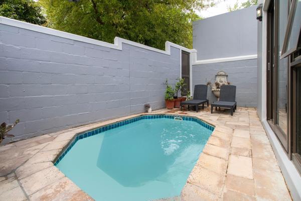 Neat 4 bedroom Home. Discover contemporary comfort and serene living in this beautifully designed 4-bedroom townhouse, perfectly positioned in the sought-after Welgevonden Security Estate in Stellenbosch. Featuring modern flooring, sleek aluminium window frames, and air conditioning throughout, this home blends style with convenience. The spacious open-plan living areas flow seamlessly to a private yard with a refreshing splash pool and a flourishing lemon tree, while direct access to a lush green park invites you to enjoy the outdoors right at your doorstep.