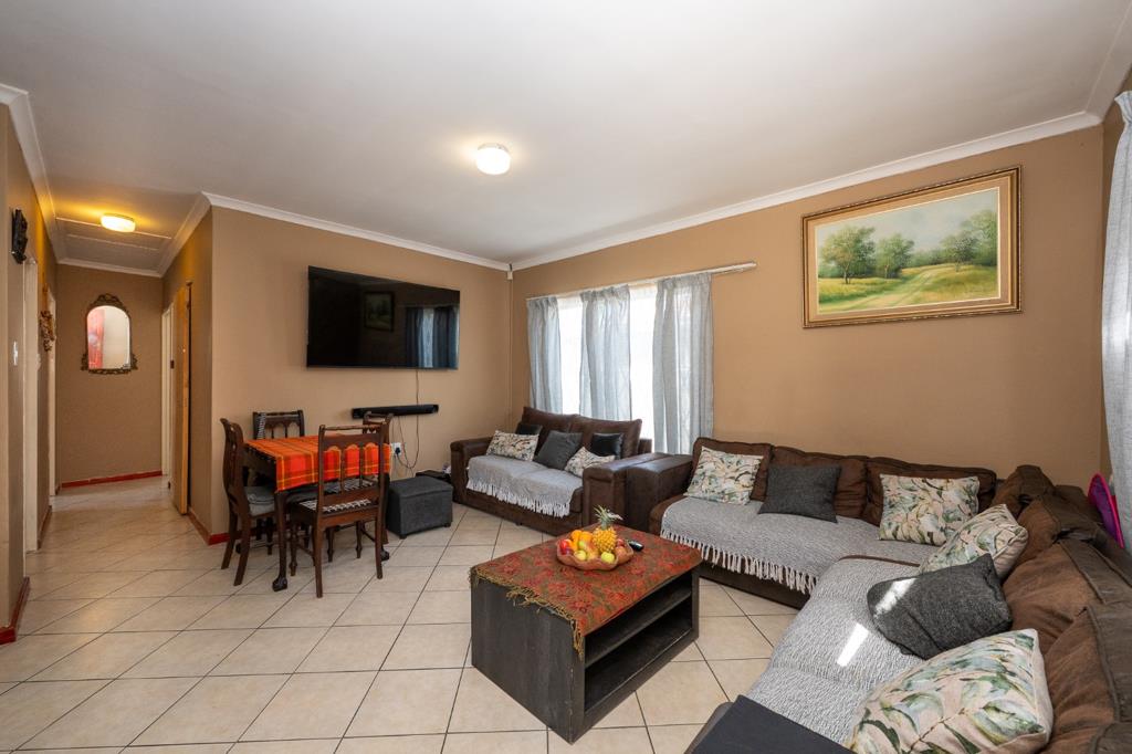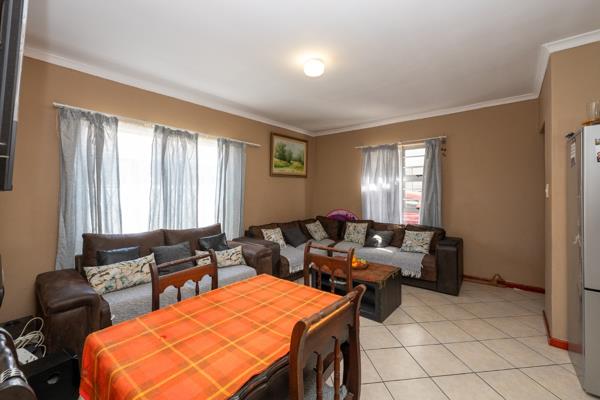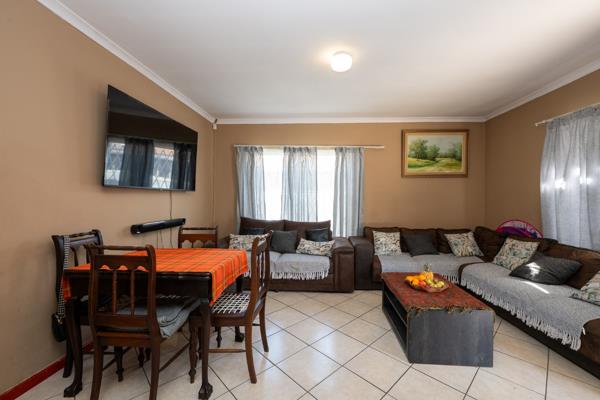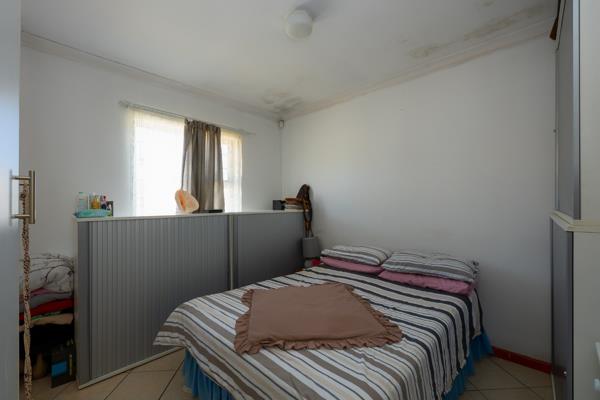 The home features 3 tiled bedrooms 2 without built-in cupboards and 2 bathrooms. The main bathroom includes a bath and a water point, while the main en-suite is fitted with a shower. Security is well catered for with burglar bars throughout.