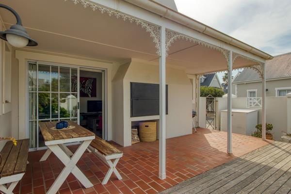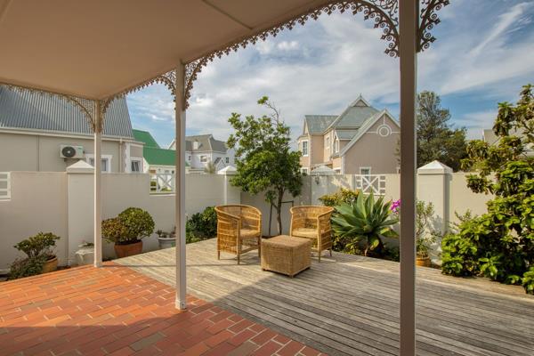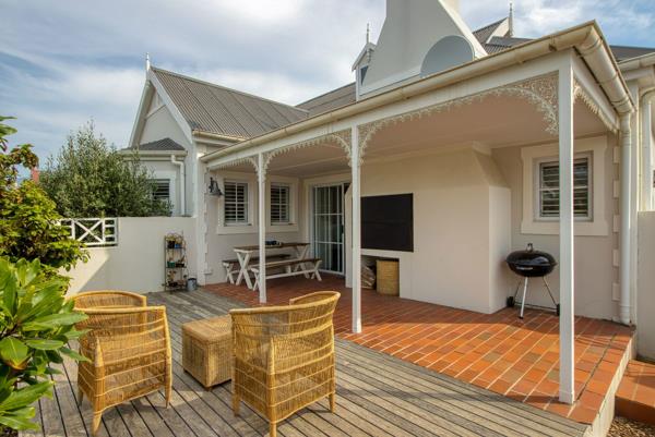 Stepping into this Victorian-styled residence, youre immediately welcomed by a cozy yet elegant open-plan living space, featuring a lounge with a fireplace, dining area, and kitchen that exudes warmth and comfort. The living area flows effortlessly onto a covered patio, complete with a built-in braai, and extends out to the garden and wooden deck, an ideal spot to soak up the sun.