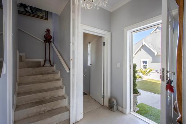 Wake up to golden sunrises and uninterrupted mountain views in this well-loved double-storey home, perfectly positioned to capture the beauty of the Helderberg range. Privately tucked away down a panhandle driveway, this residence offers a peaceful retreat while maintaining exceptional convenience and security.