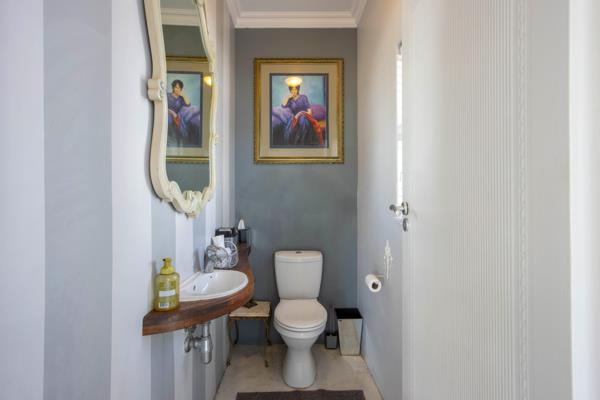 Step inside the impressive entrance hall, which seamlessly guides you to the main living areas and the staircase leading upstairs. The heart of the home features an open-plan lounge and dining room that flows out to a covered patio. This is your front-row seat to spectacular sunrises over the Helderberg Mountains and the lush golf course views. A versatile, enclosed patio adjacent to this space offers potential as a children''s play area or a cozy family room with easy outside access.