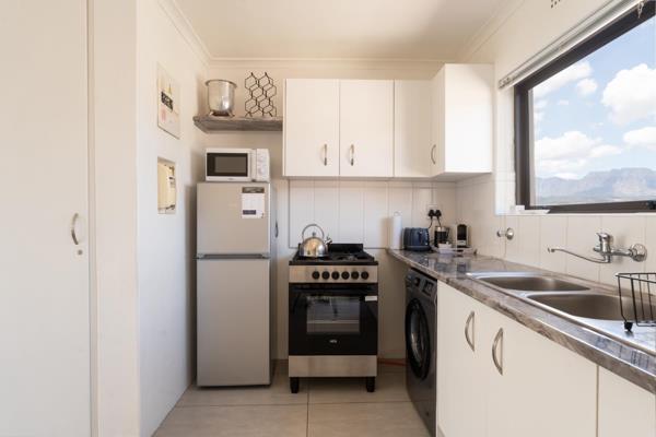 Own your very own piece of paradise! Situated in the sheltered embrace of Greenways, a seaside Golf Estate This renovated apartment would be ideal for the couple buying their first home, student accommodation or the ideal holiday home retreat. Upon entering the west facing sun drenched unit, you will be welcomed by a comfortable open-plan living area that flows effortlessly onto an enclosed balcony that could easily be used as a study or sunroom. The functional kitchen features ample cupboard space, one waterpoint for your washing machine, a gas stoveoven and a dining area for mealtimes.