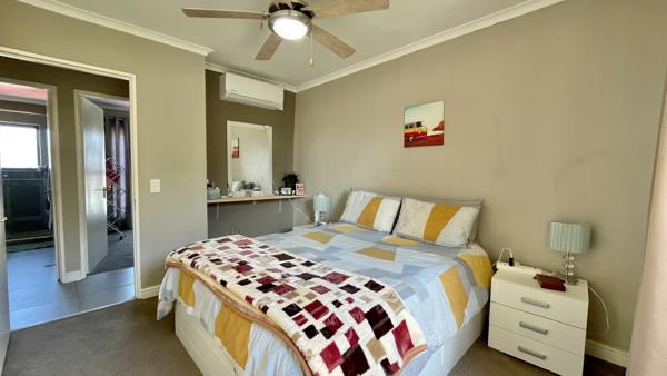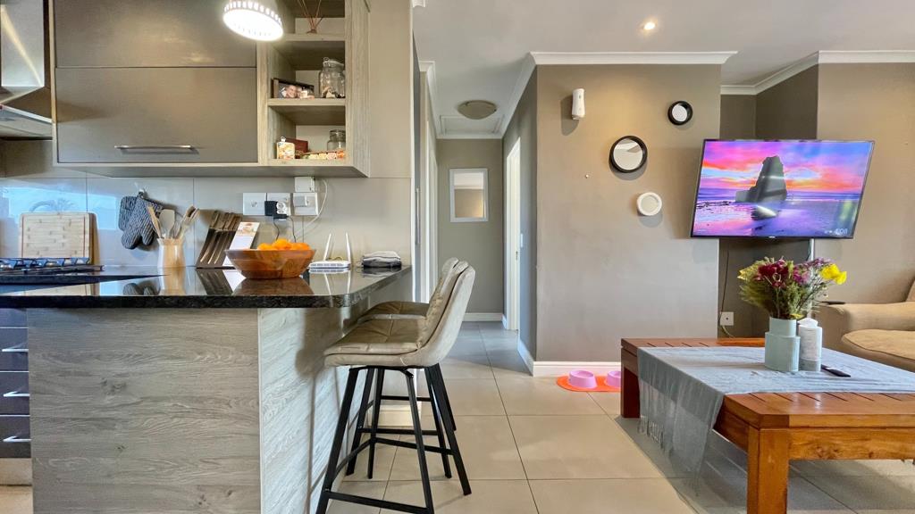 The main bedroom is fitted with an air conditioner and ceiling fan. From the modern kitchen and the second bedroom, youll enjoy stunning views of the Hottentots Holland mountain range.