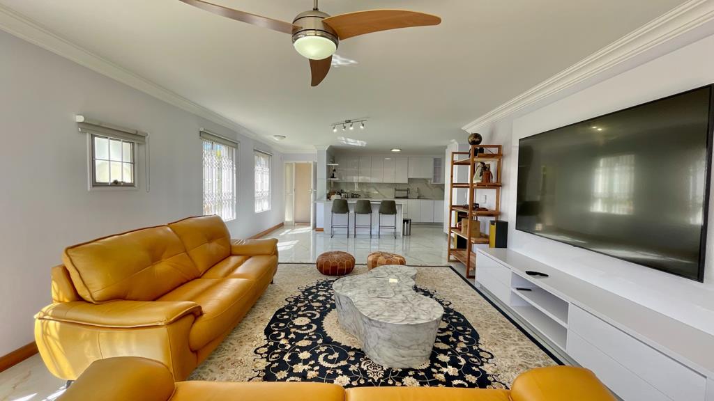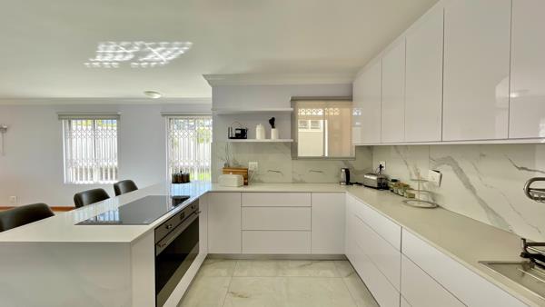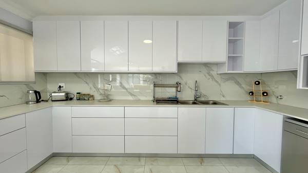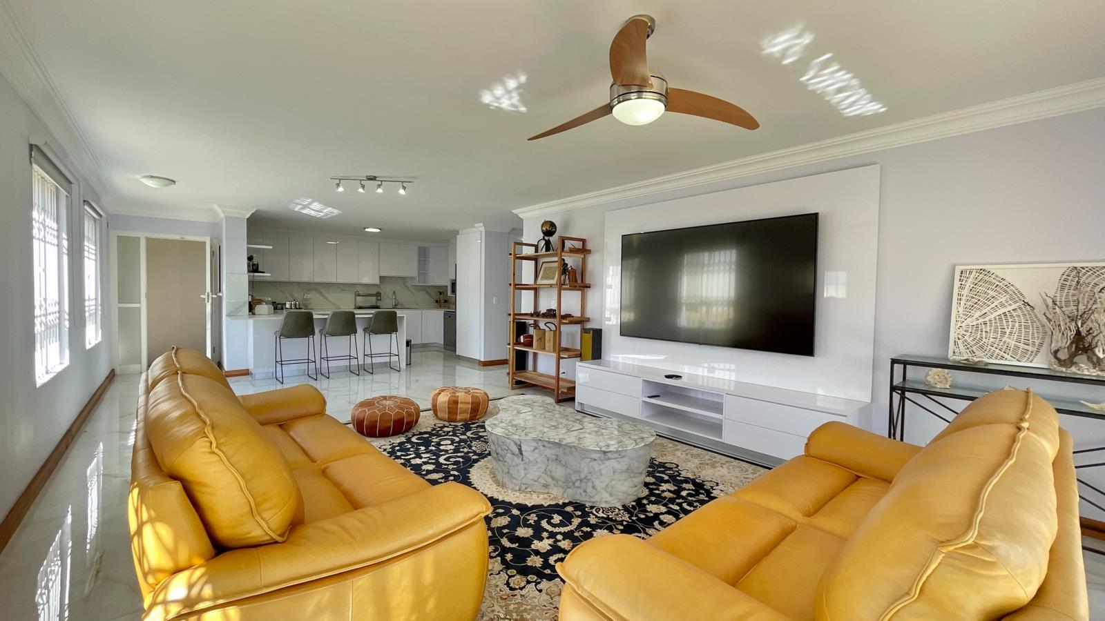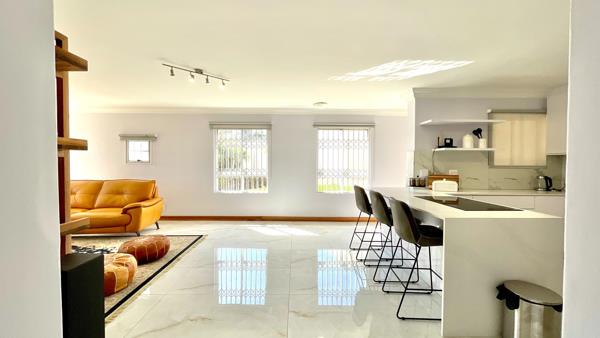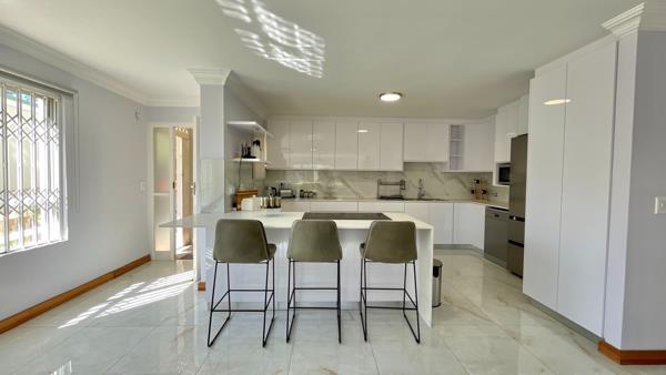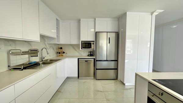 This beautifully renovated ground-floor apartment in Greenways Estate offers four generously sized bedrooms, two full bathrooms, and a guest cloakroom, making it perfect for families or those who love to entertain. The unusually large open-plan kitchen and living area is the heart of the home, finished with sleek countertops, a built-in hob and undercounter oven, and plenty of cupboard space. Tiled floors in the living areas combine with soft carpeting in the bedrooms for both style and comfort, while roller blinds throughout add a modern touch. The main bedroom is exceptionally spacious and opens directly onto the private north-facing patio, creating a seamless indoor-outdoor flow. The additional bedrooms all feature built-in cupboards, ensuring ample storage, and the bathrooms are finished to an exceptional standard with tasteful, modern fittings.