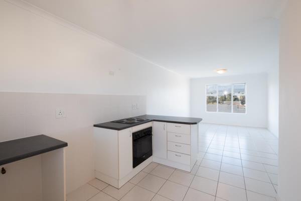 This 60 m apartment is perfectly positioned on the second floor of a well-maintained complex, just a short stroll from the beach and within easy reach of all local amenities.The apartment features two comfortable bedrooms with built-in cupboards, a full bathroom with bath, shower, basin, and toilet, and a bright, open-plan lounge and kitchen. The kitchen offers ample storage, an under-counter oven, and hob, while the living area is fully tiled for low-maintenance, easy living. Water and electricity are supplied via prepaid metering for added convenience.