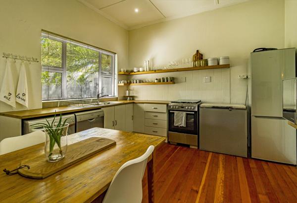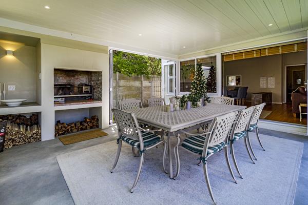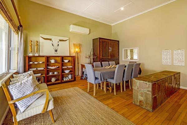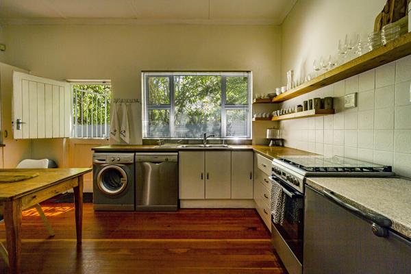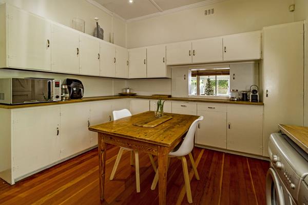The main residence comprises three spacious bedrooms, two of which are en suite, along with an additional guest bathroom. True to homes of this era, the bedrooms are beautifully proportioned and complemented by solid wooden floors that add warmth and charm throughout. A newly added braai room enhances the homes entertaining appeal and flows comfortably from the living areas.