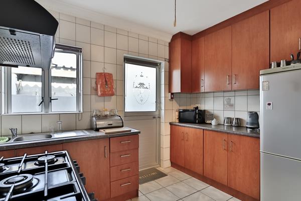 This beautifully maintained home offers 5 bedrooms, 2 en-suite bathrooms and 2 guest toilets. The 5 bedrooms consist of built-in cupboards and laminated flooring. Kitchen 1 is fitted with appliances including a 4-plate gas hob and electric oven and kitchen 2 is also fitted with a 4 plate hob an electric oven. Both kitchens are fitted with ample cupboards. The house has two open plan living spaces, and all windows and doors are aluminum.