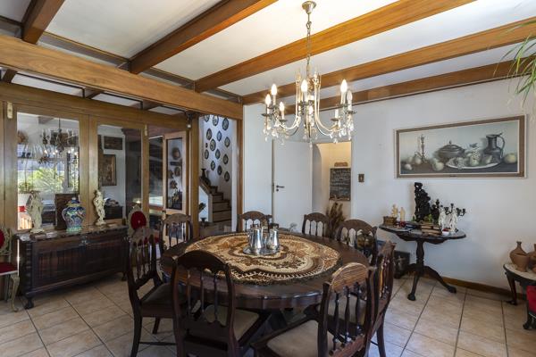 The ground floor includes a double bedroom with a bathroom and two inviting lounges, one of which opens to the garden through sliding doors. A separate wing of the house includes a bedroom, bathroom, and lounge with the potential to be converted into a self contained flatlet for extended family or rental use.