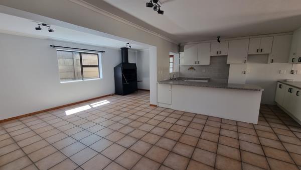 Bottom area consists of kitchen, lounge, dining room and braai area with inside braai. This braai area opens unto an open area the size of a single garage which can be used as entertainment area or parking for extra vehicles. This area opens to the sparkling blue splash pool for the hot summer days. Direct access from double garage to the house through a large open space which can be used as an office or storage space. Corner plot, 2 entrances.