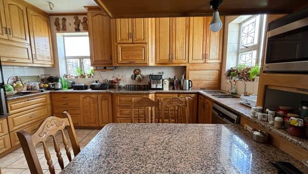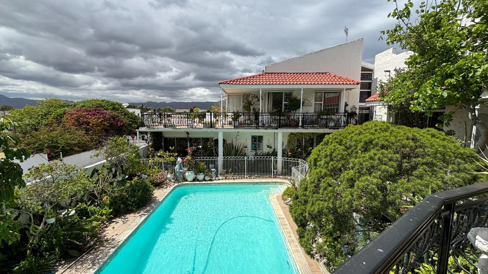 Set in the prestigious enclave of Strand North, this impressive multi-level residence enjoys sweeping ocean and Hottentots Holland Mountain views, best appreciated from two expansive balconies. While the interior reflects a more traditional style, it offers an exceptional opportunity to modernise and personalise, allowing the home to fully realise its remarkable potential. The welcoming entrance leads to a private study and guest cloakroom before opening into generous living spaces centred around a well-appointed kitchen with solid wood finishes, double oven, hob and integrated griller. Designed for easy entertaining, the dining area flows into the TV and braai room, opening onto a tranquil landscaped garden, while a separate guest suite with its own lounge and bathroom lends itself perfectly to a self-contained flatlet.