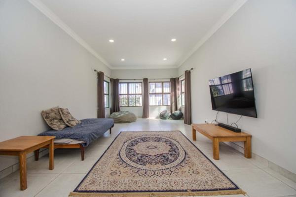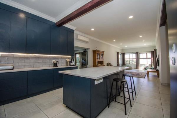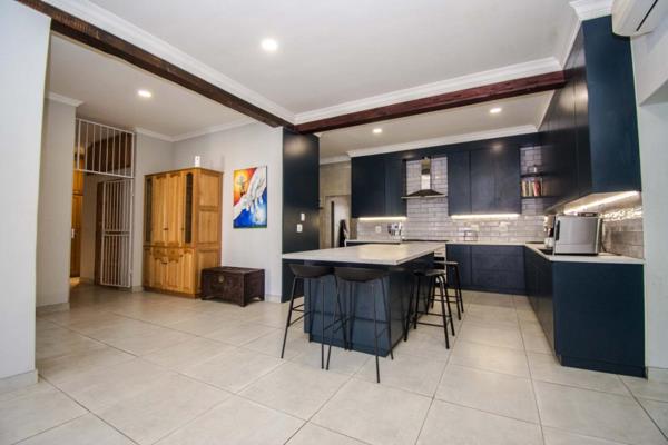 This modern and spacious corner property is the perfect home for a large family seeking comfort, style, and functionality just a few steps from the beach. Boasting four generous bedrooms and three beautifully appointed bathrooms, two of which are en-suite, along with a full family bathroom, this home offers ample space for everyone to live and relax in comfort. In addition to the main living quarters, there is a versatile outside room ideal as a teen pad, guest suite, or domestic quarters. It features its own en-suite bathroom with a shower, toilet, and basin, providing flexibility and privacy for extended family or live-in help. Designed for effortless living and entertaining, the expansive open-plan layout seamlessly connects the stylish kitchen with the living and dining area. The dining room includes a cozy fireplace and opens out to a covered patio with a built-in braai, perfect for relaxed, wind-free gatherings year-round. The immaculate kitchen truly is the heart of this home, equipped with sleek Smeg appliances, a pantry, a scullery, a large storeroom, and a built-in water filter. The impressive 12-seater island is ideal for casual meals, social gatherings, or family celebrations.