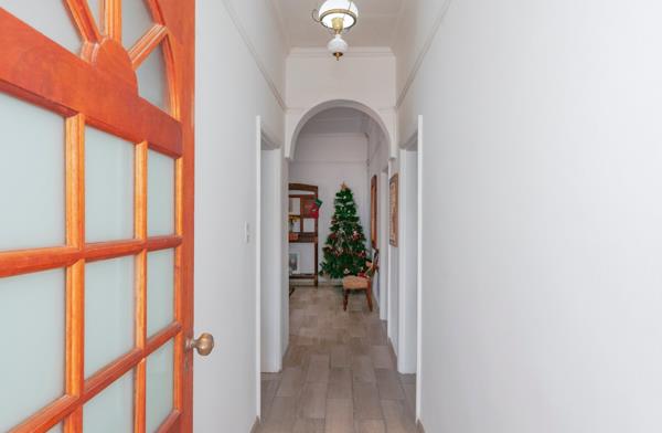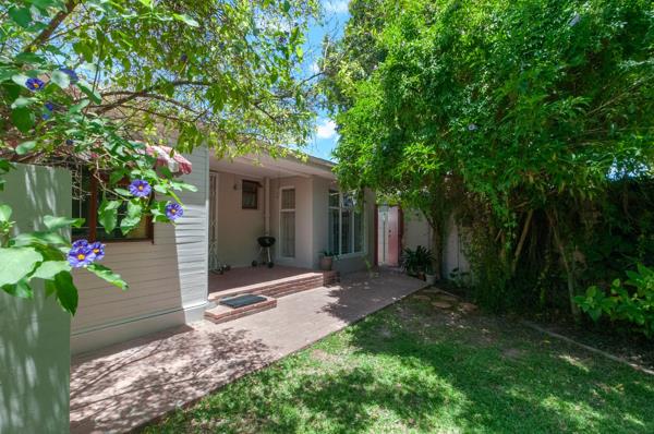 Outside, the home offers a low-maintenance garden with mature trees, charming secret garden, and a sprinkler system providing a peaceful and private retreat. Parking is well catered for with two lock-up garages.