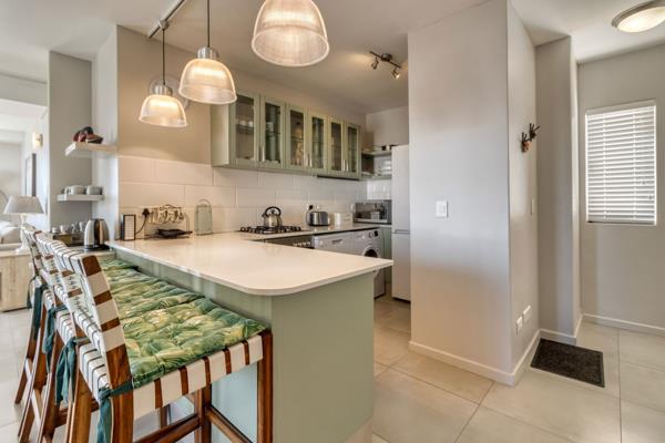 The serene main bedroom offers a private en-suite, while the two additional bedrooms share a beautifully designed second en-suite perfect for family or guests. Step onto the expansive 180-degree wrap-around balcony and spacious stoop, where the Helderberg and Hottentots Holland mountains frame the horizon, the ocean shimmers below, and Table Mountain stands proud in the distance. Whether youre savouring a quiet sunrise or sharing a glass of wine as the sky turns gold, every moment here feels magical.
