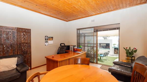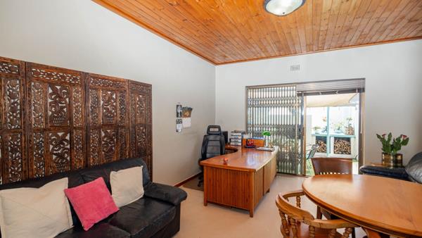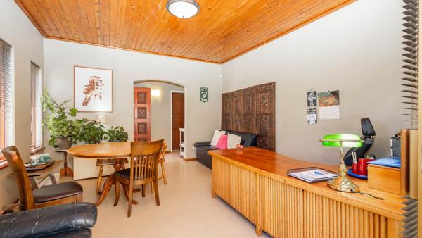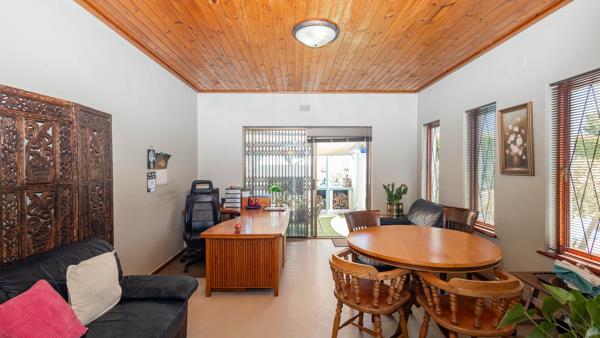 Step inside and discover a versatile layout designed for easy living. From your entrance hall, you are greeted by a private lounge or study...ideally for working from home, walking out onto an undercover patio and braai area... You''ll find a well-equipped kitchen with a kitchen nook, a built in oven and hob and plenty of cupboards, walking out onto a stoep that offers washing facilities for a washing machine and tumble drier. An extremely spacious dedicated dining room, and a cozy lounge for the whole family that walks out onto a patio, braai and swimming pool area. Many rooms feature unique, warm wooden slatted or plank ceilings that add character. This home boasts three comfy bedrooms and two bathrooms, including a main en-suite.