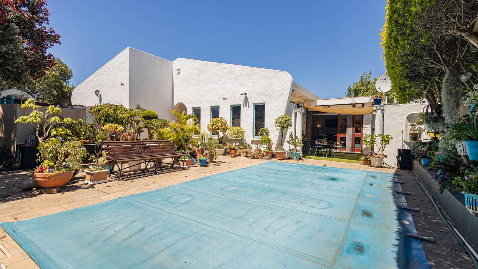 Outside, your private oasis awaits! The front yard features a covered swimming pool, ready for sunny South African days. There''s also a fantastic patio area with artificial turf and a built-in braai, making it super easy to host friends and family. With a lovely garden, paving, and a driveway leading to two direct access garages and two additional parking spaces, convenience is key. Your furry friends are welcome too! Water tanks are a thoughtful touch for sustainable living.