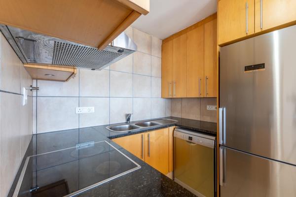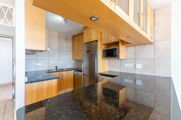 Designed to embrace its spectacular setting, the apartment boasts panoramic ocean views and opens seamlessly onto a private balcony, ideal for relaxed coastal entertaining. The open-plan kitchen is thoughtfully finished with granite countertops, a built-in stove and oven, and space for a fridge, dishwasher, and washing machine. A discreetly positioned tumble dryer in the passage adds further convenience.
