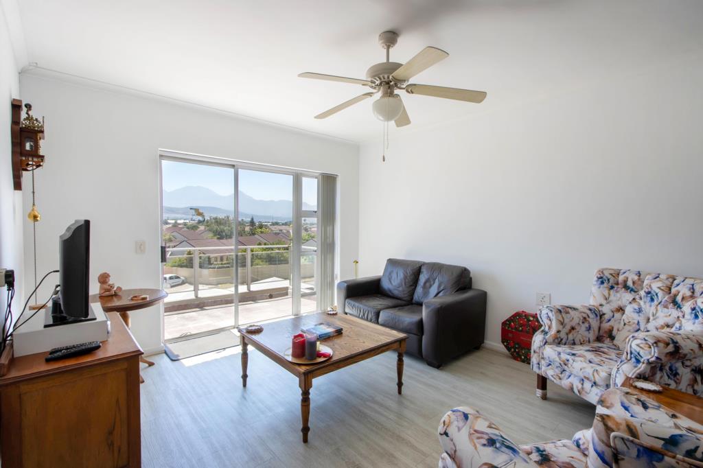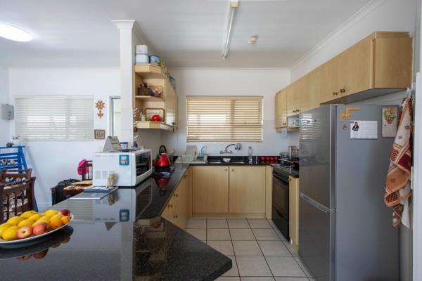 As you enter, youre welcomed into a well-designed open-plan living area where the kitchen and lounge connect seamlessly. Large windows bathe the interior in natural light, creating a warm and inviting atmosphere throughout. The spacious living area flows onto both an enclosed and an open balcony, offering flexible indoor-outdoor living all year round. From here, you can enjoy sweeping views of the Helderberg and Gordons Bay mountainsa serene backdrop to everyday life.