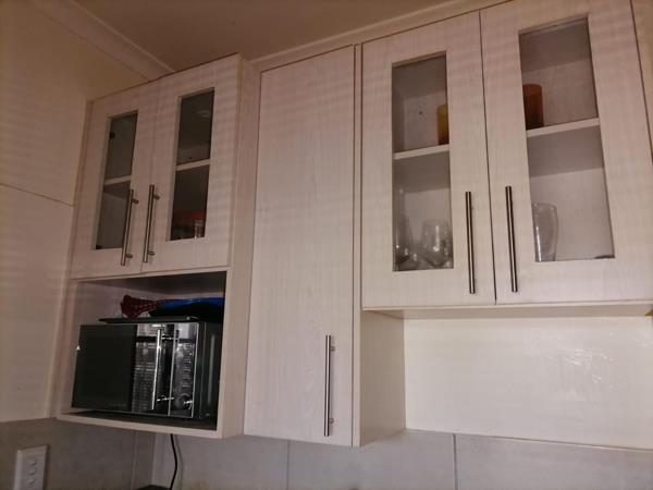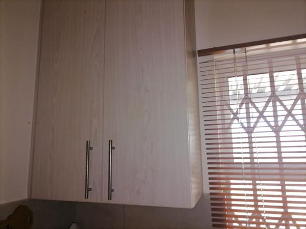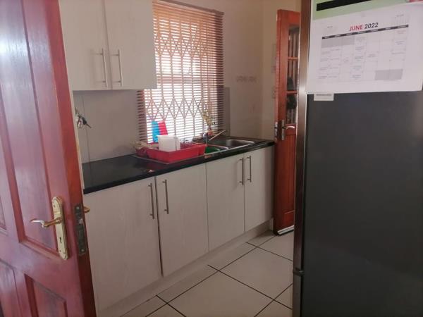 The spacious living room flows into an open plan kitchen that is equipped with ample space for your microwave, fridge, and either a washing machine or dishwasher. The kitchen also boasts a built-in electric oven and stove, along with additional built-in cupboards for storage. The under-roof parking area easily accommodates two vehicles and offers a delightful space for outdoor entertainment with its built-in braai.