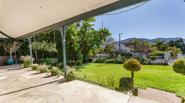 Generous living and dining areas are enhanced by a charming historic fireplace, while a large covered patio with built-in braai flows seamlessly to the sparkling swimming pool perfect for entertaining.