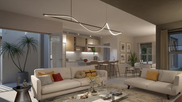 This brand-new, full-title home, designed in a charming Cape Vernacular style, features a spacious 3-bedroom, 2-bathroom layout. The design emphasizes open-plan living, seamlessly connecting the living room, dining area, and a modern gourmet kitchen, which includes a separate, fully-fitted scullery.