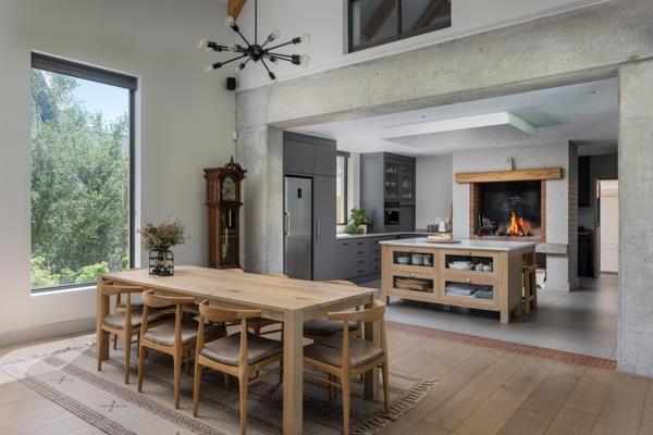 Upon entering, an elegant entrance hall welcomes you into a spacious open plan kitchen fitted with premium cabinetry and Miele appliances. A separate scullery adds additional storage and practicality. The open plan dining and lounge area features a combustion fireplace for the winter months, while a built in braai in the kitchen creates the perfect setting for year round entertaining. A second lounge or TV room also includes its own built-in braai, offering even more space for relaxation and entertainment.
