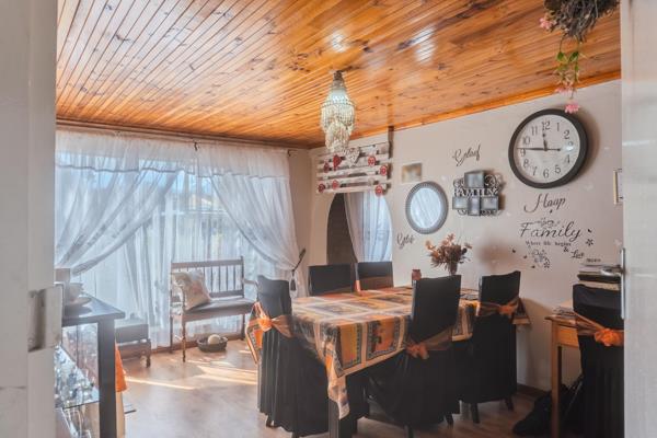 The main house welcomes you into a spacious dining room which leads seamlessly into the main living area complete with a built in Fire Place, creating a welcoming and warm ambiance. The well appointed kitchen features an abundance of built in cupboards, a stove, oven and extractor fan.