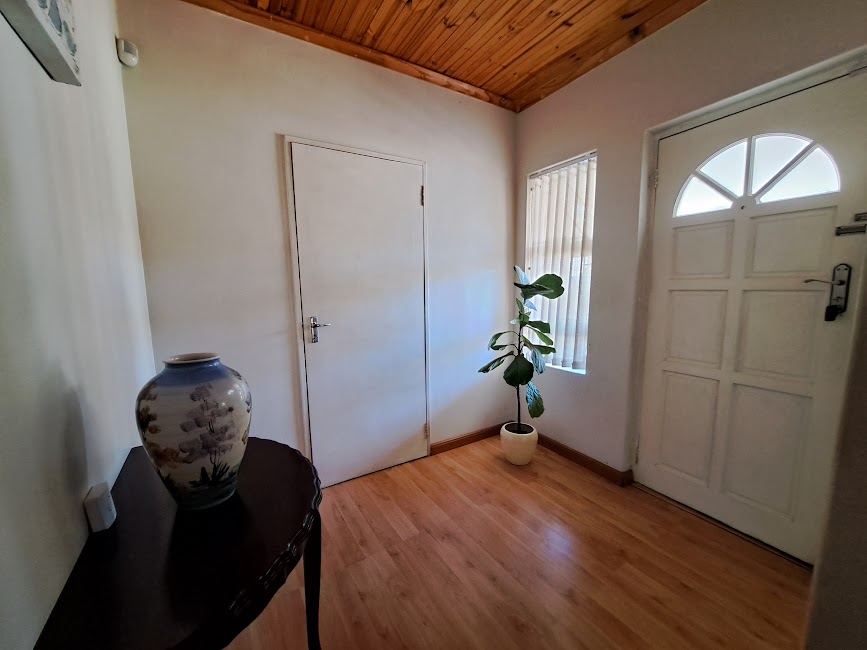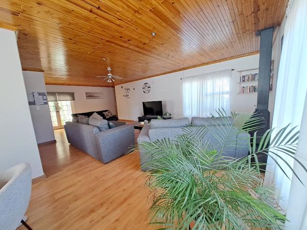 Designed with entertaining in mind, the open-plan layout features a well-equipped kitchen with ample cupboard space, flowing seamlessly into the living areas. A sheltered, under-roof braai area ensures year-round gatherings with family and friends, no matter the weather.
