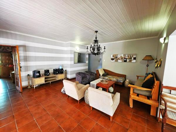 * The open-plan design connects to the braai room, lounge with fireplace, dining area, and TV room offering a refined space for entertaining in style.