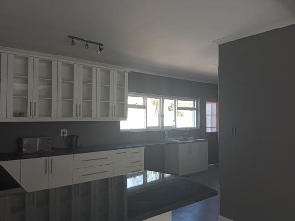 The kitchen is modern with ample storage space and open plan with the loungedining area.