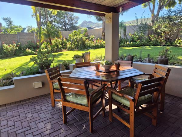 Outdoor living that invites you to linger: The covered patio looks out over a well-established garden and swimming poolperfect for relaxed weekends and summer evenings.