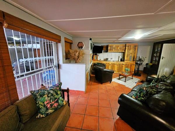 The garden is an oasis of diverse plants, flowers and two large palm trees that add to the ambience of this property. Enjoy outdoor entertainment with a built-in braai overlooking the chlorinated pool. Benefit from a fully functional irrigation system keeping the garden lush and green.