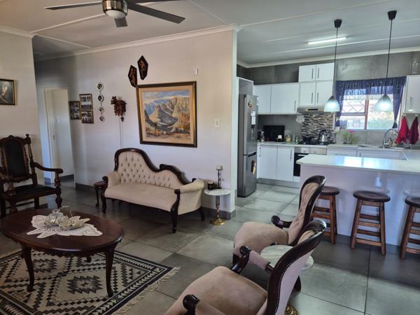 The inviting living room extends to an indoor braai room the perfect space for relaxed gatherings no matter the season. The home also provides direct access from the secure covered parking into the house, ensuring both ease and safety. The garden is lovingly maintained, offering a welcoming outdoor retreat without being high-maintenance. Security has been thoughtfully addressed, giving you peace of mind from the moment you arrive.