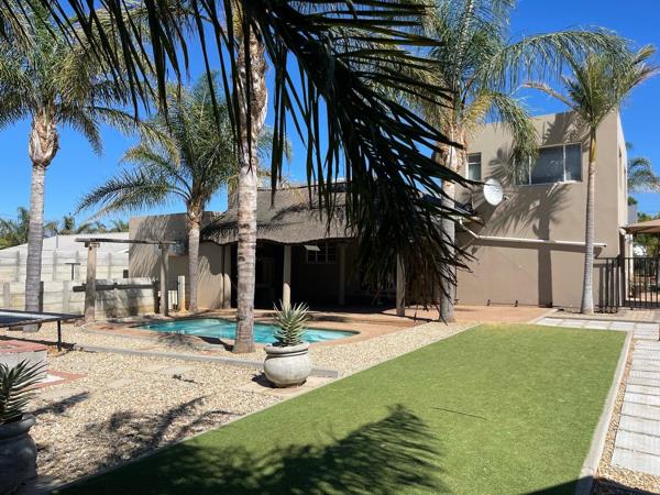 This home offers two inviting living areas, providing ample space for relaxation and entertainment. The well-equipped kitchen is functional. A Lapa with a built-in braai creates the ideal setting for outdoor gatherings, while the sparkling swimming pool adds a touch of luxury. The property is complemented by a well-maintained, spacious garden, offering a serene and private outdoor retreat.