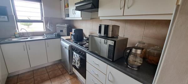 The open-plan lounge and dining area create a warm and inviting space, seamlessly flowing onto a private patio complete with a built-in braaiideal for entertaining. The kitchen is fully fitted with ample cupboard space, a hob, and an under-counter ovenperfect for preparing delicious meals.