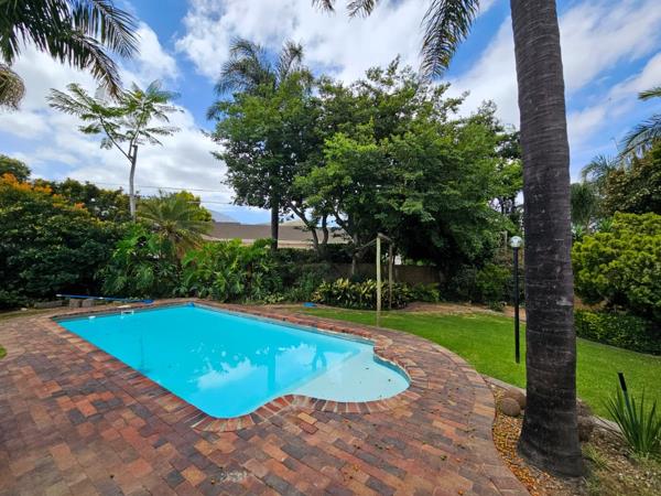 Lush garden with a sparkling pool